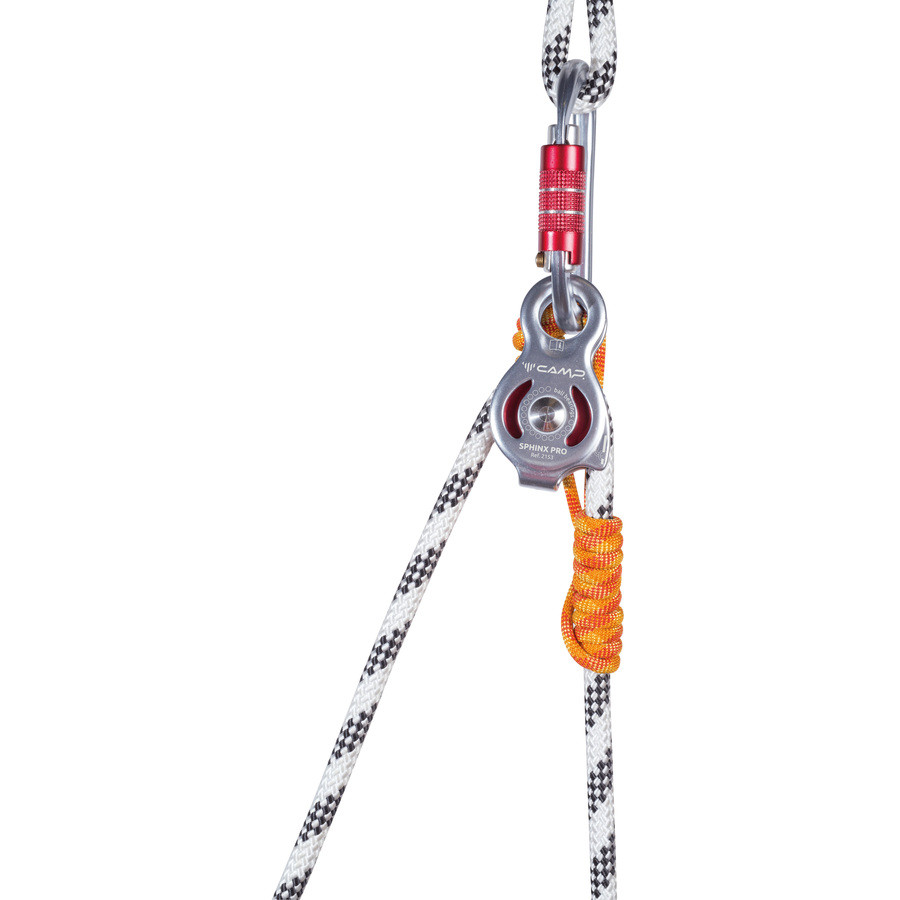 Possibilité d'utilisation avec un noeud autobloquant Prusik, installable d'un côté.