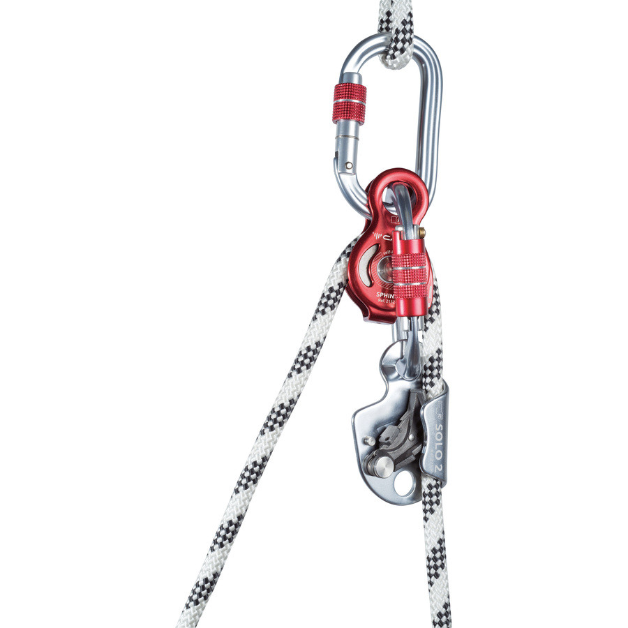 Possibilité d'utilisation avec un nœud autobloquant Prusik, installable d'un côté.