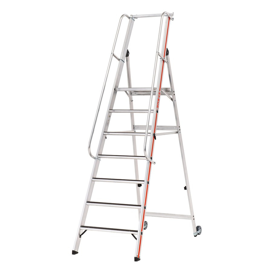 Echelle à plate-forme 7 marches r13 avec roulettes et longue main-courante | |