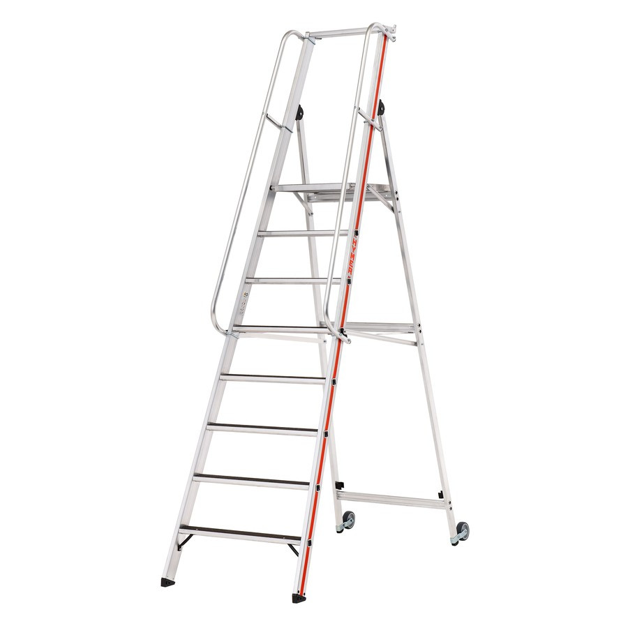 Echelle à plate-forme 8 marches r13 avec roulettes et longue main-courante | |