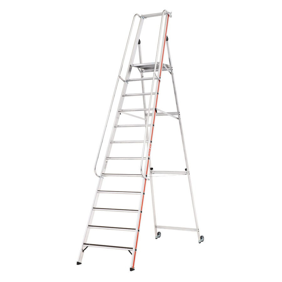 Echelle à plate-forme 10 marches r13 avec roulettes et longue main-courante | |