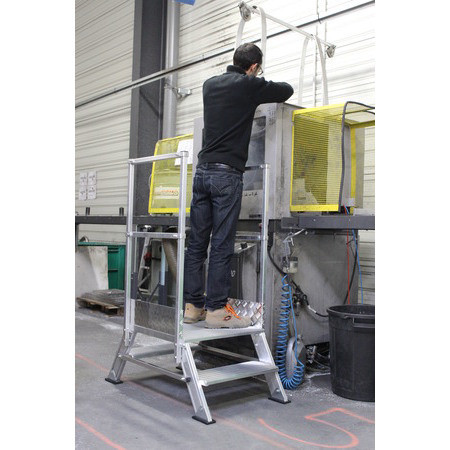 Structure robuste en aluminium.Existe du 2 à 4 marches.Equipement pouvant être muni de garde-corps et de roues escamotables.