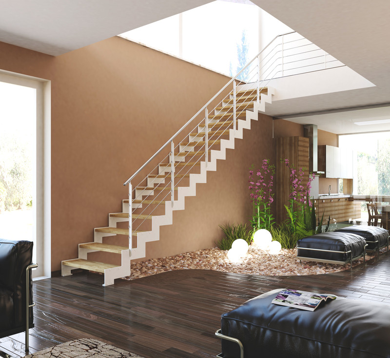Escalier sur poutre centrale en acier très moderne apporte un plus grand confort grâce à un giron supérieur.