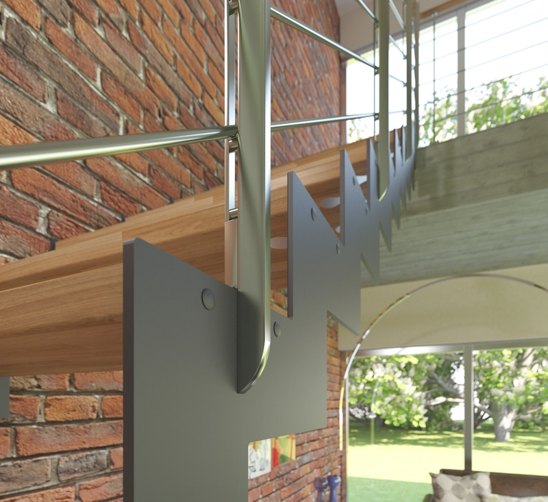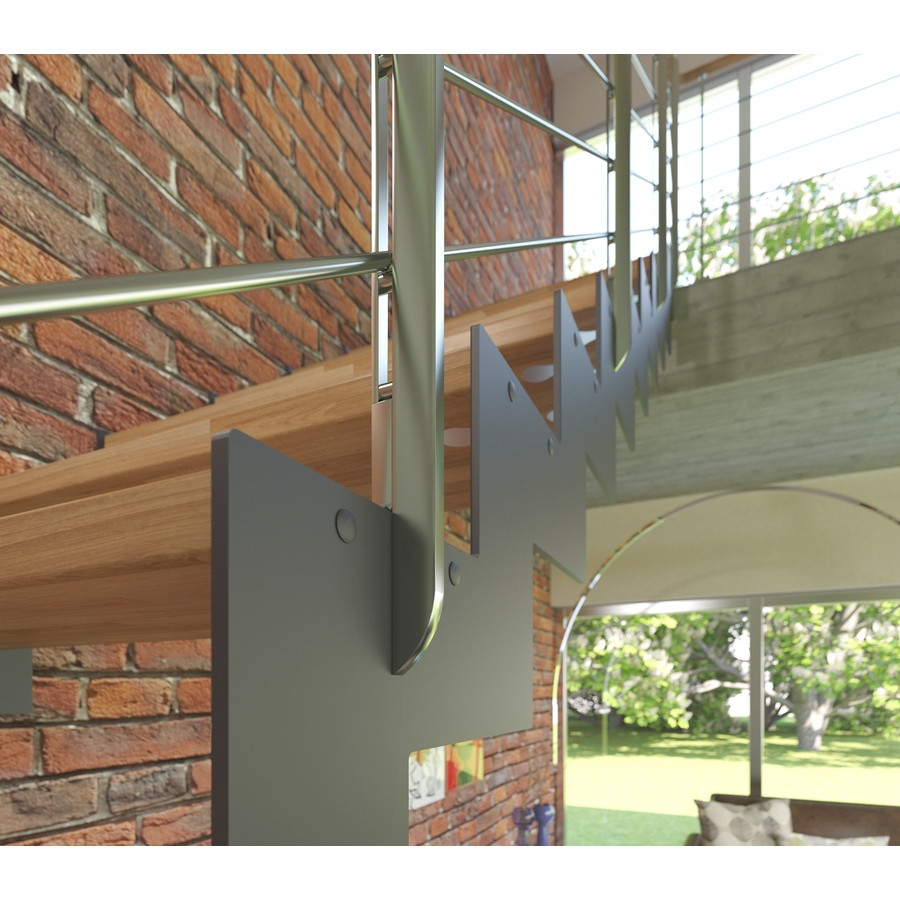 Structure composée de doubles limons latéraux en acier de 8 mm d'épaisseur avec une découpe au laser en crémaillère au-dessus et en-dessous