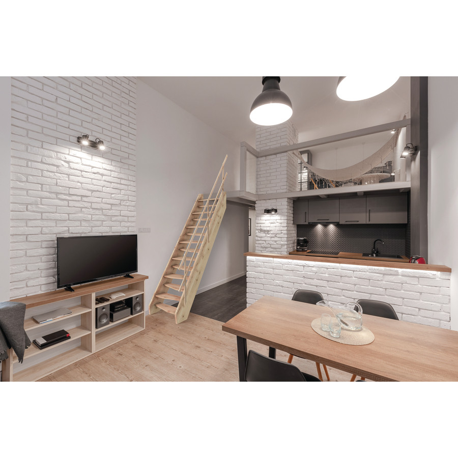 Dans le cas d'une utilisation peu fréquente, notre modèle gain de place avec pas japonais combera vos attentes. Echelle en bois particulièrement adaptée aux espaces exigus, à angle de montée plus pentu et recoupable en hauteur uniquement.