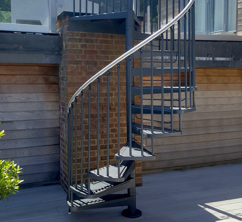 Escalier hélicoidal en acier pour équiper l'extérieur d'une maison.Fonctionnel et solide, l'escalier Camelia vous offre un excellent compromis entre esthétique et praticité.