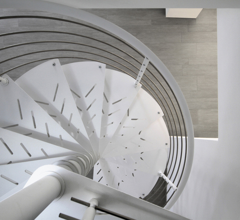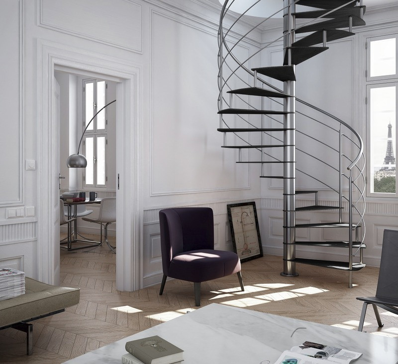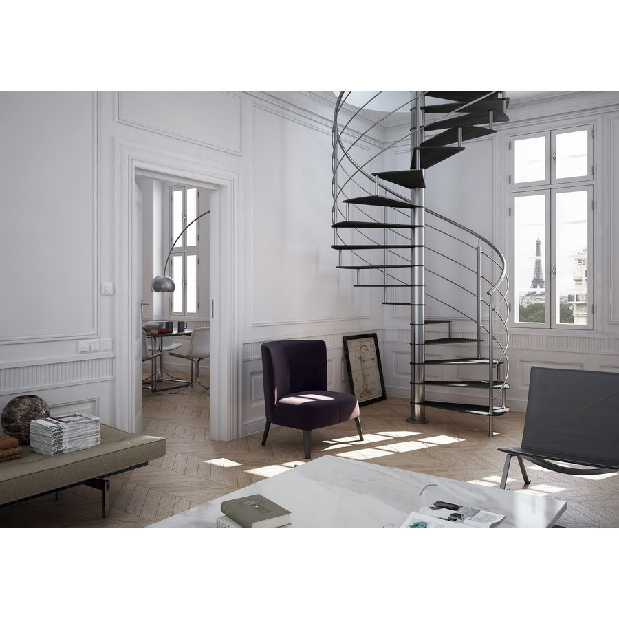 Escalier hélicoidal en acier pour équiper l'extérieur d'une maison.Fonctionnel et solide, l'escalier Camelia vous offre un excellent compromis entre esthétique et praticité.