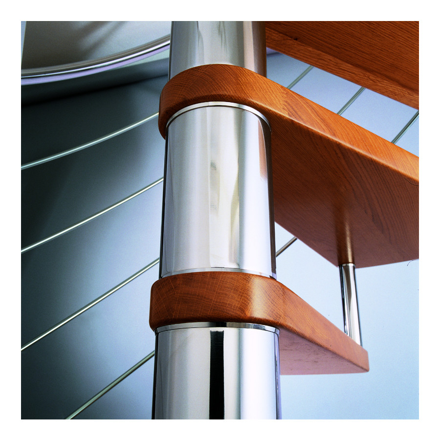 L'escalier ELLIPSE est conçu sur un axe central en acier inoxydable avec des marches en hêtre massif donnant à votre intérieur une ambiance agréable.