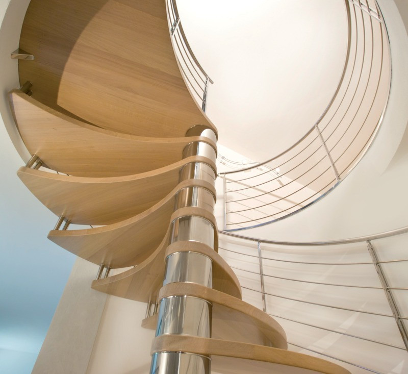 L'escalier ELLIPSE est conçu sur un axe central en acier inoxydable avec des marches en hêtre massif donnant à votre intérieur une ambiance agréable.Choisissez entre nos différentes essences de bois c...