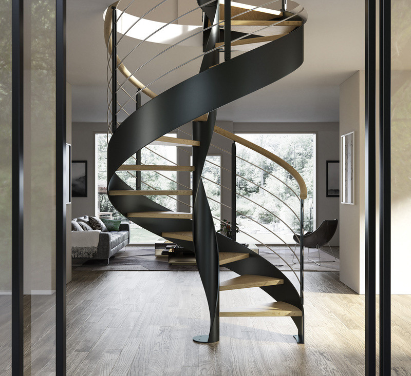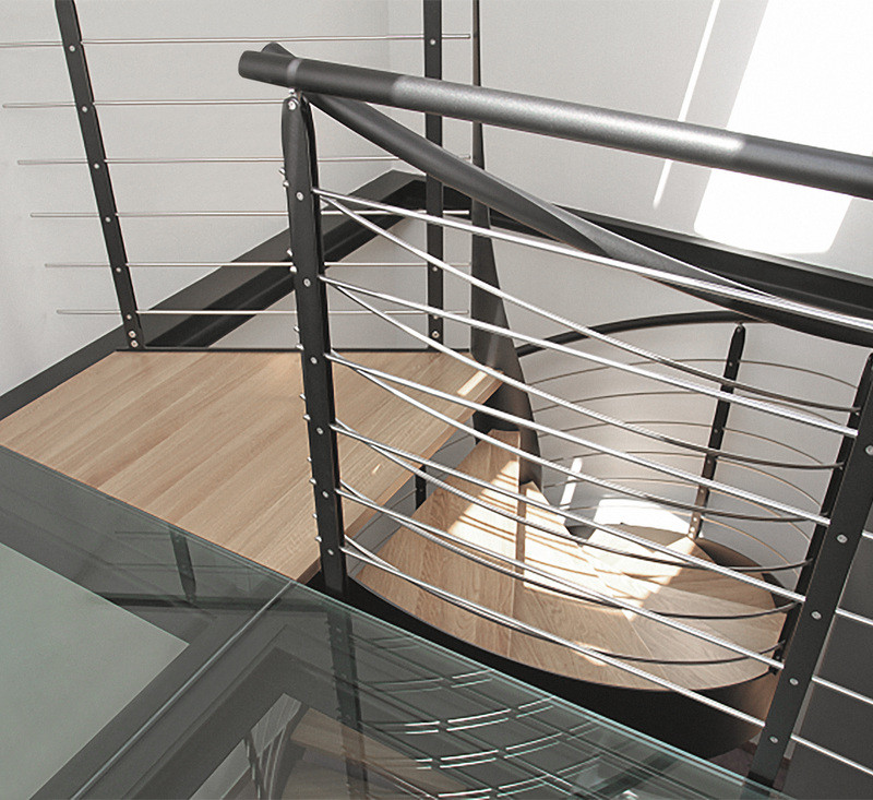 L'escalier ORTENSIA est l'un de nos modèles hélicoïdaux "haut de gamme" le plus tendance et le plus design, il ajoute une touche moderniste à votre habitat.