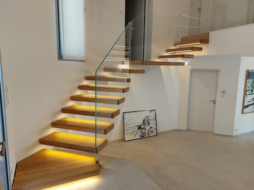 Minimaliste et léger, l'escalier suspendu semble léviter au-dessus du sol. Seulement composé de marches, il est dépourvu de contremarches et de limon (pièce latérale dans laquelle sont taillées des encoches qui soutiennent les marches), laissant ainsi passer la lumière. Très apprécié pour son aspect esthétique, moderne et innovant, l'escalier suspendu est une véritable alternative aux escaliers traditionnels.