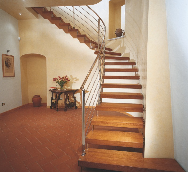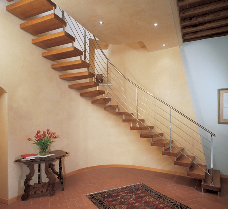 Cet escalier suspendu est en bois apporte lumière et espace à tout type d'intérieur.