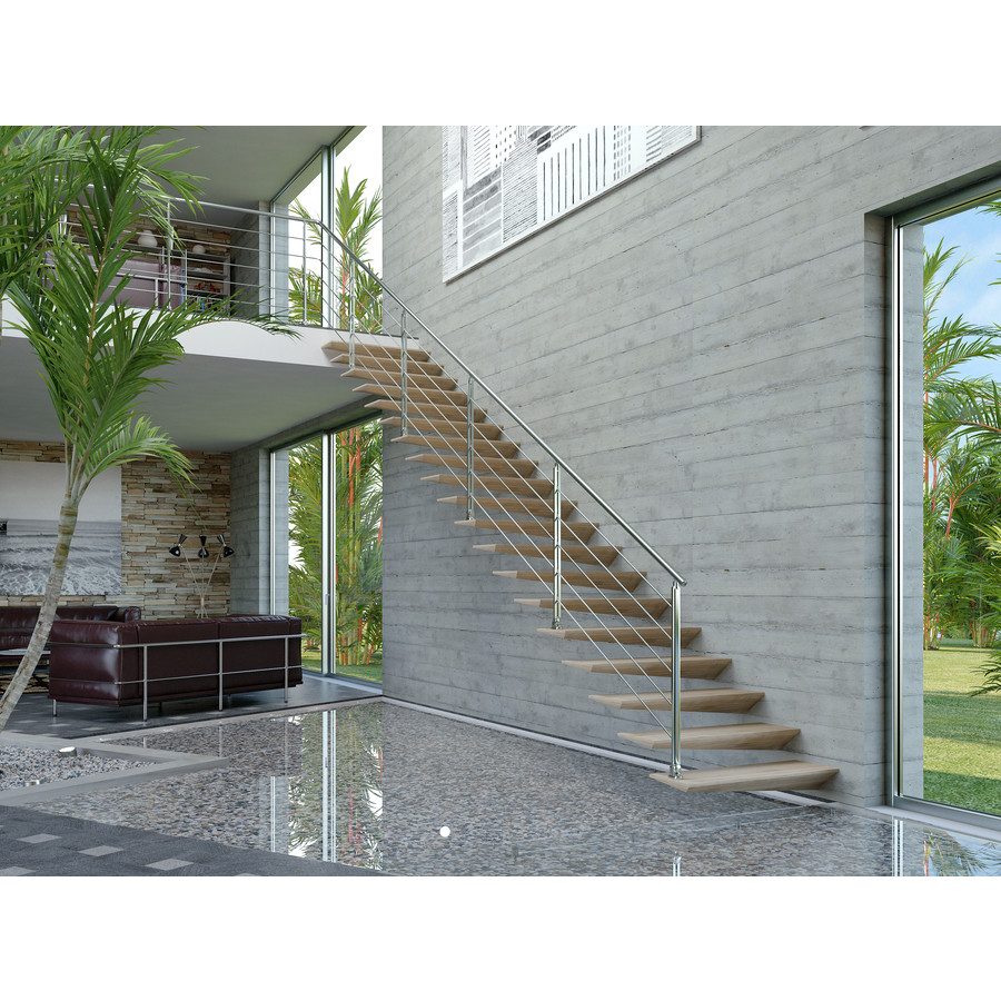 Cet escalier suspendu est en bois apportelumière et espace à tout type d'intérieur.