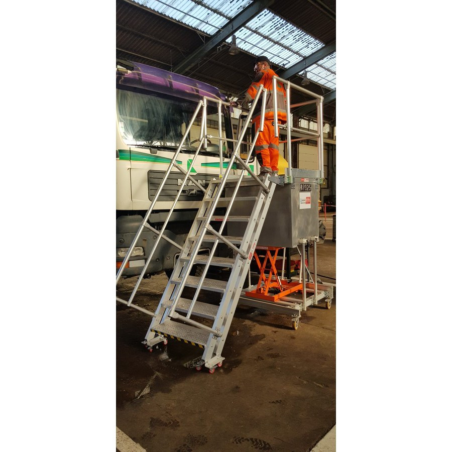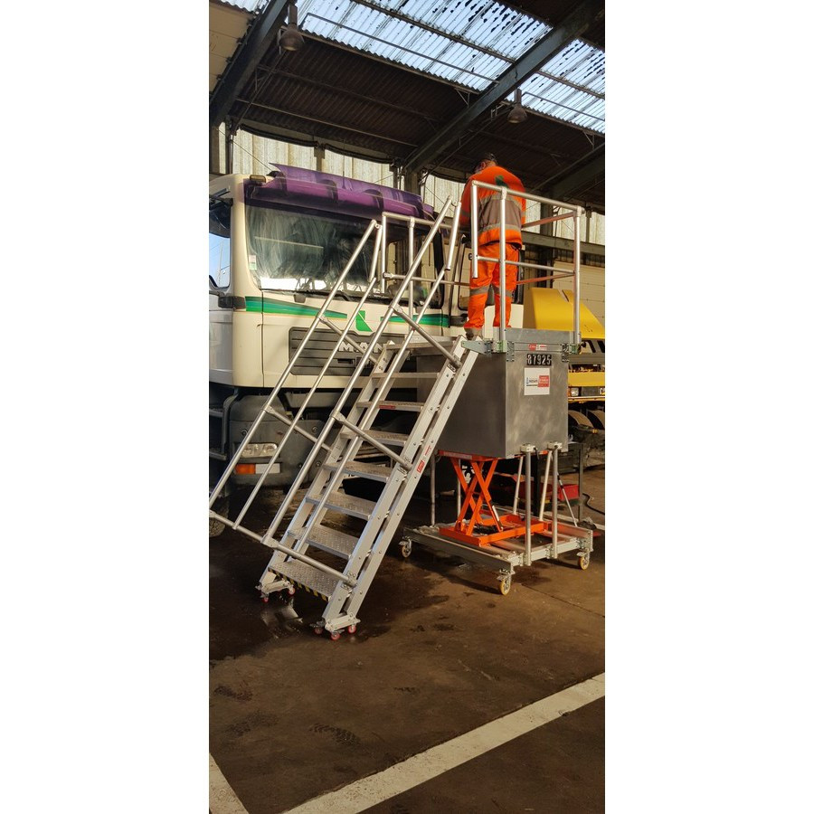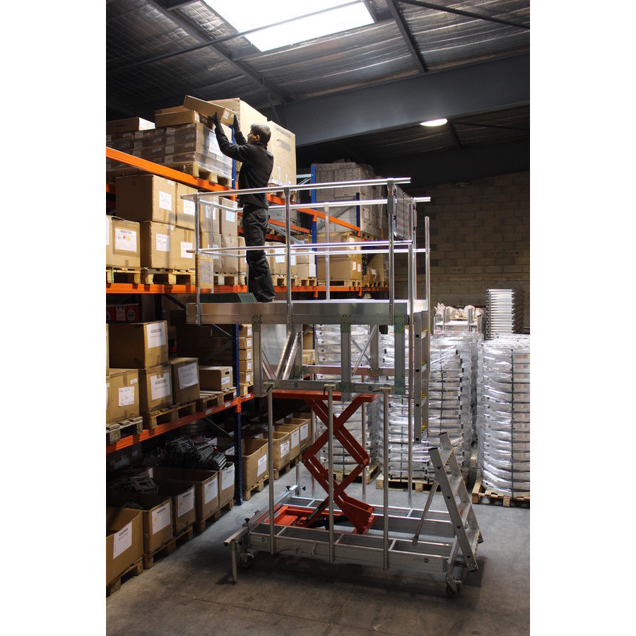 INNOVATION L'Echelle Européenne qui facilite l'intégration des réglages de hauteur de travail sur tous types de plates-formes et de passerelles fixes ou roulantes.Idéal pour la logistique.