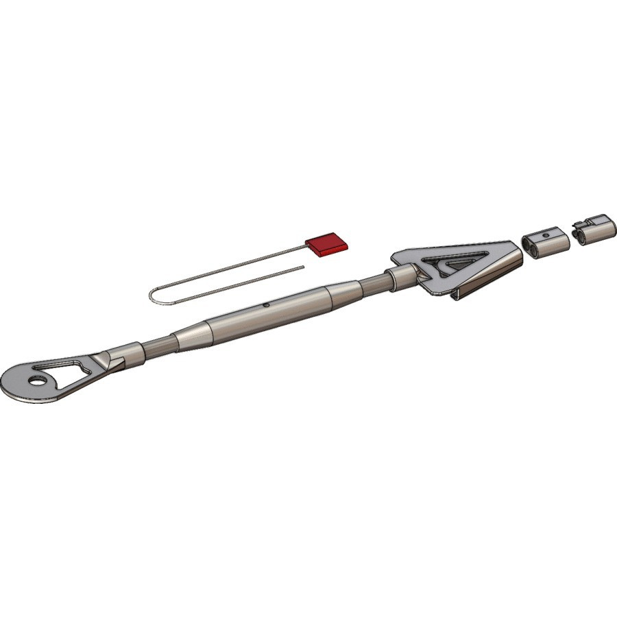 Le tendeur CONEKT permet de régler la tension du câble. Il est équipé d'une terminaison Secur-Vit, d'une pièce de finition et possède une platine de départ intégrée.