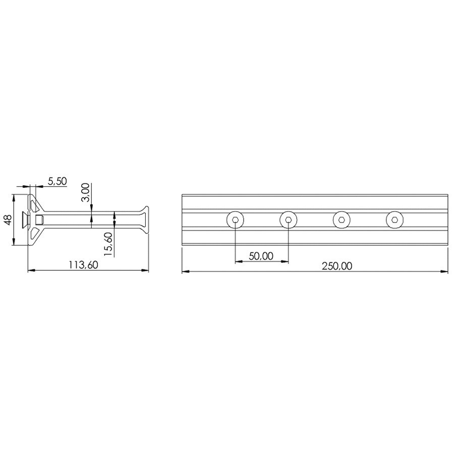 Eclisse de jonction permettant de relier 2 rails CONEKT XL par l'intermédiaire de 4 vis FHC M8 lg 20mm en inox 316.
