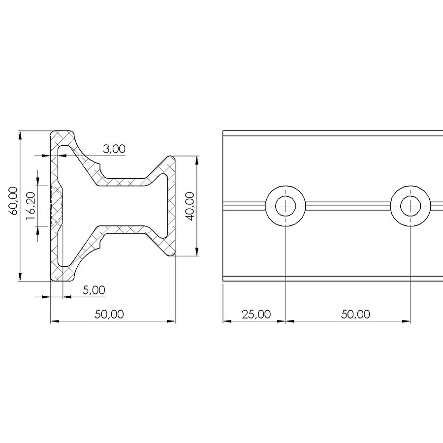 Le rail CONEKT possède un profil fermé en I, assurant une grande rigidité en flexion et en torsion.