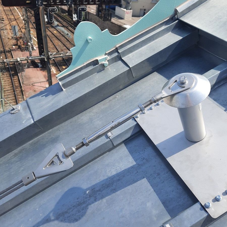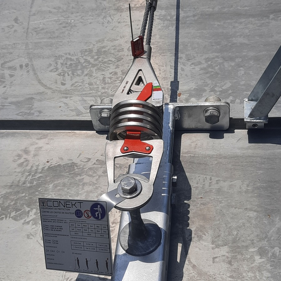 Utilisation de la ligne de vie câble manuelle au sol et mur.
