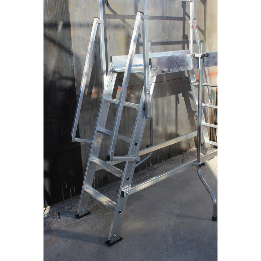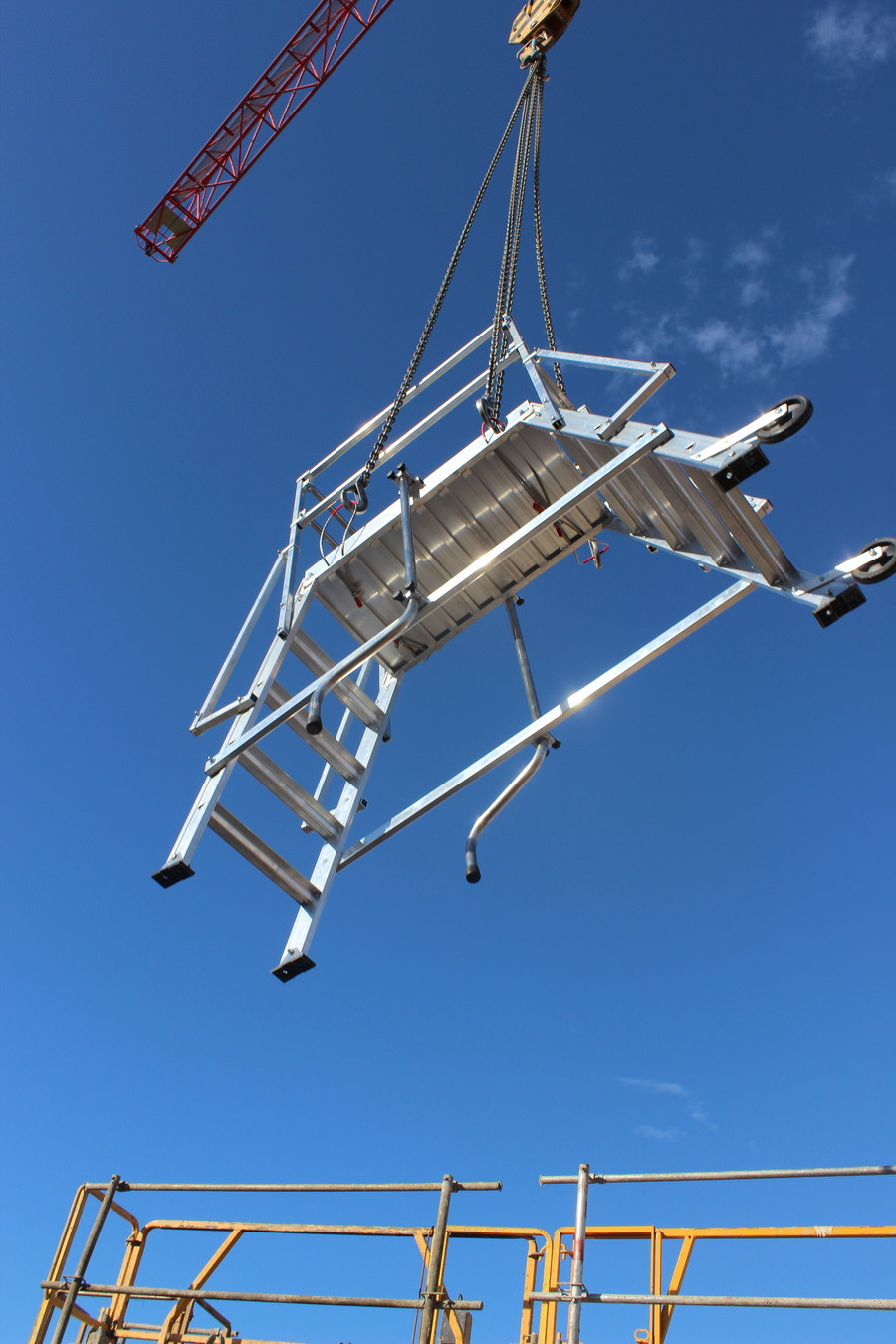 Dotée de rampes d'accès, de garde-corps de sécurité, de portillons à retour automatique, la plate-forme double accès banche est disponible du 3 au 7 marches.