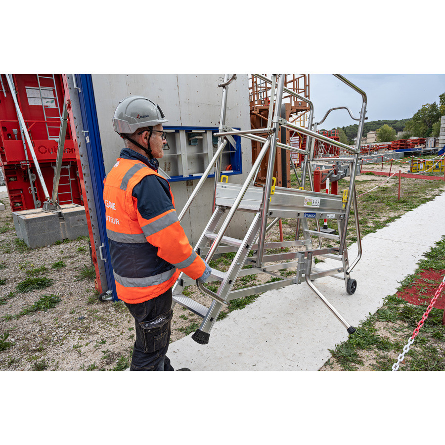 Marches alu striées antidérapantes (largeur : 100 mm).