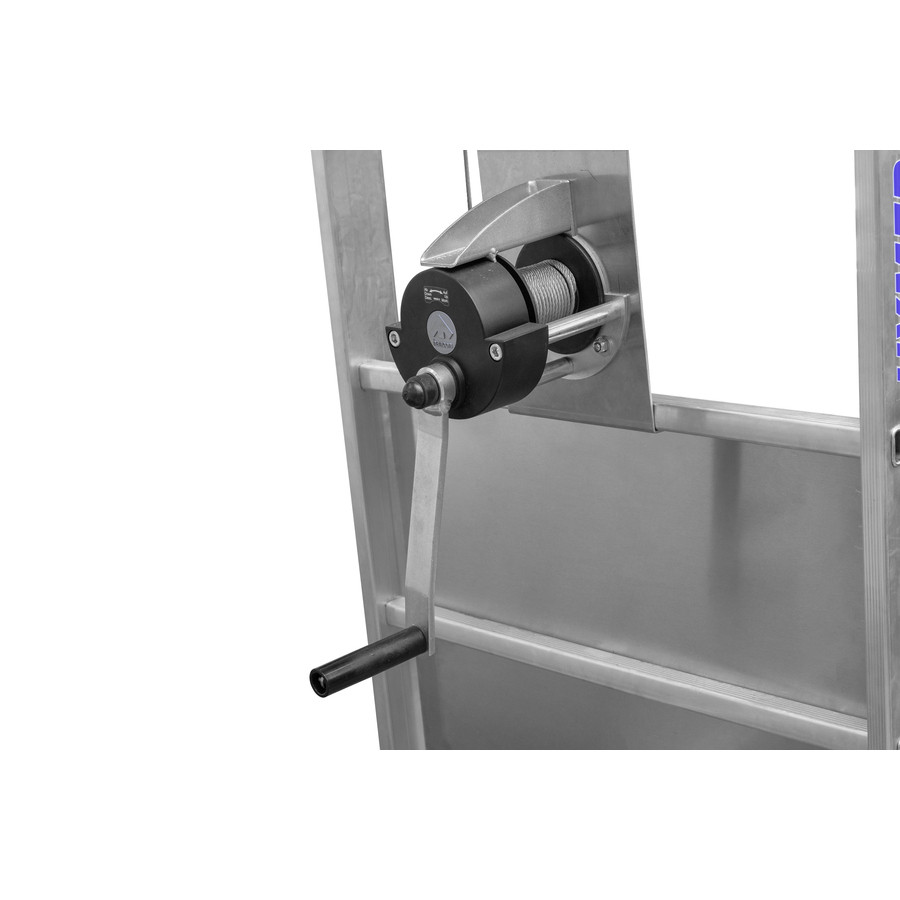 Grâce au treuil intégré, la hauteur de plate-forme peut être réglée facilement et rapidement (plage de réglage de 130 mm).