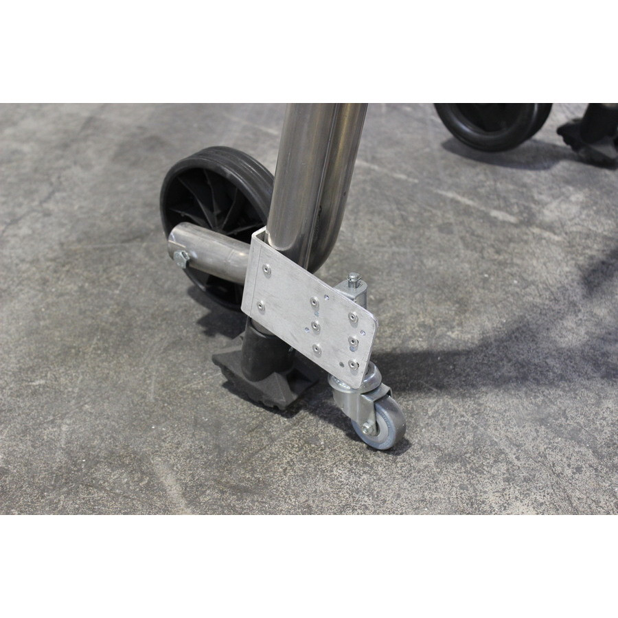 Roues larges de 150 mm pour faciliter les déplacements sur chantier