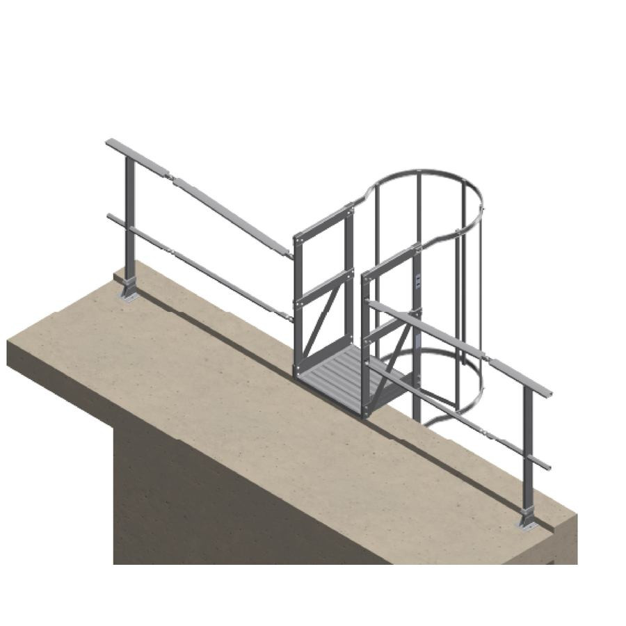 Kit de jonction permettant de relier la sortie d'une échelle à crinoline avec les garde-corps de toiture Fastguard.