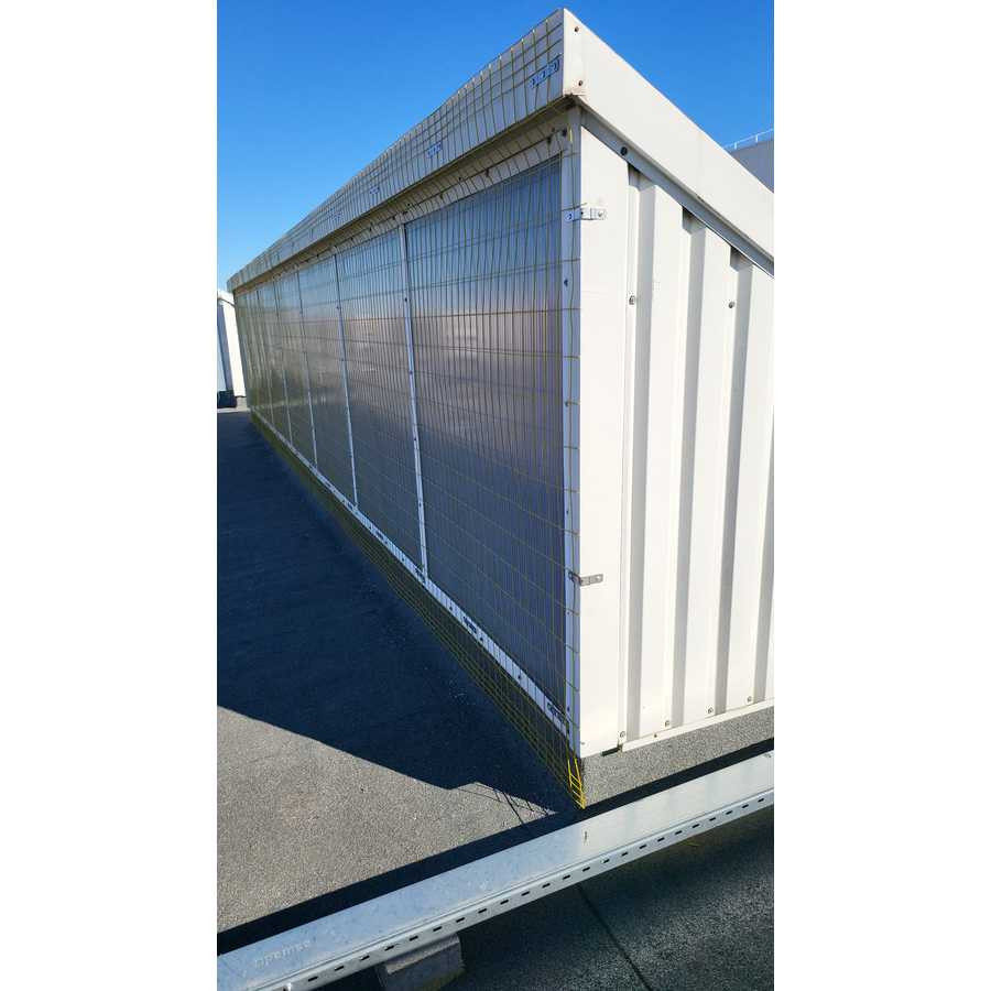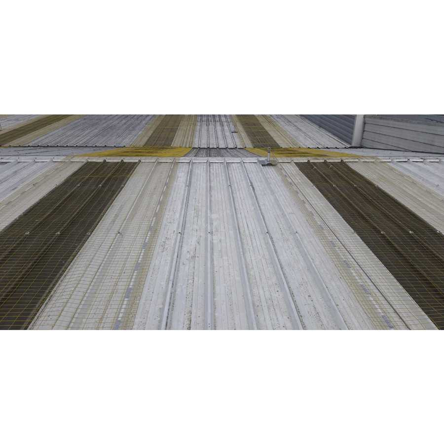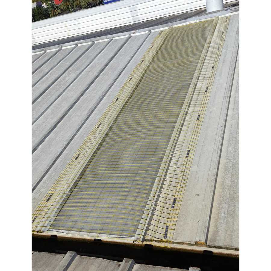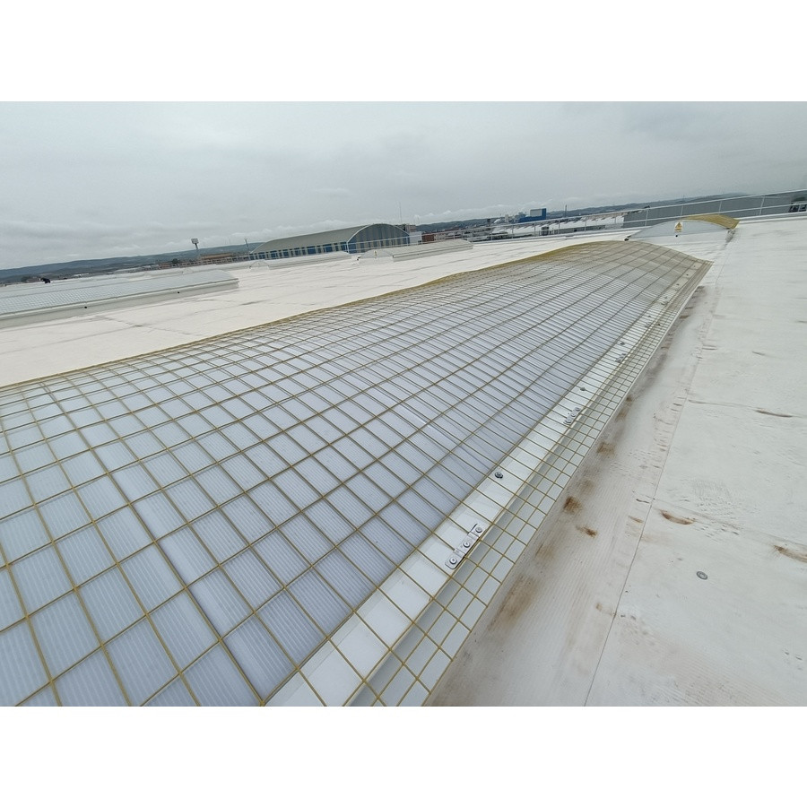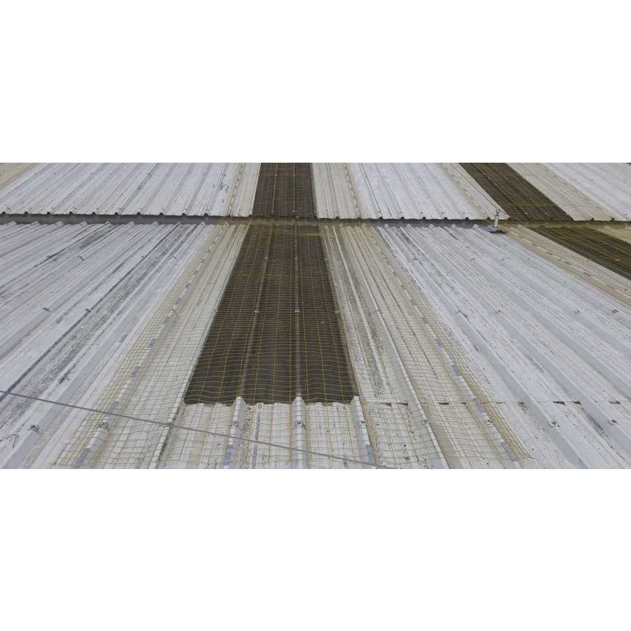 Le filet rectangulaire électro-soudé, galvanisé et plastifié (couleur jaune) avec 4 fils aux extrémités longitudinales est conçu comme une protection de lucarne pour les couvertures industrielles.