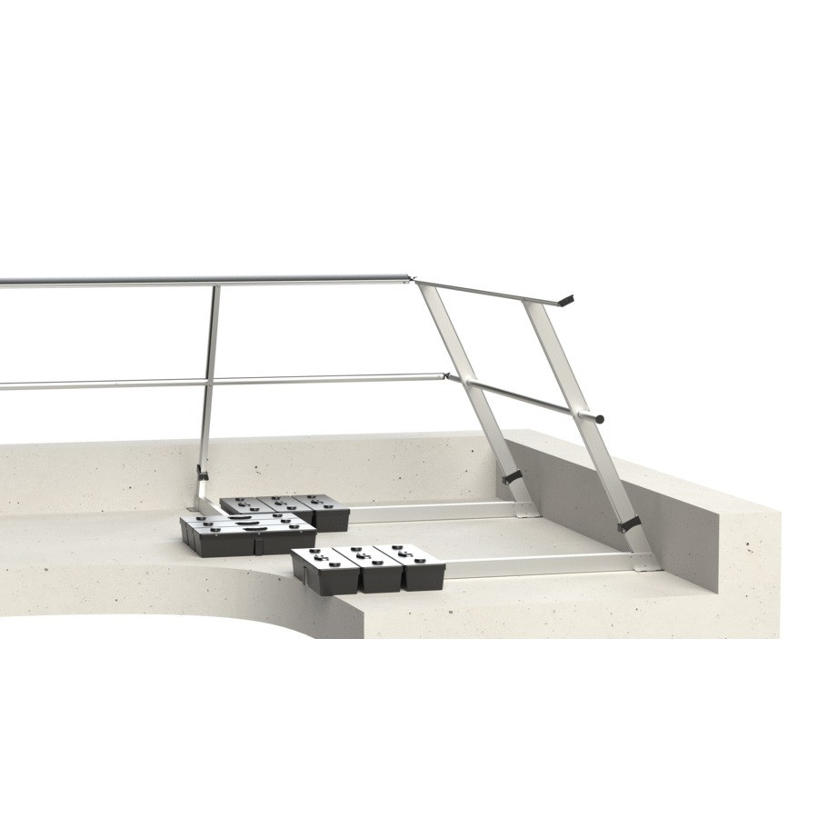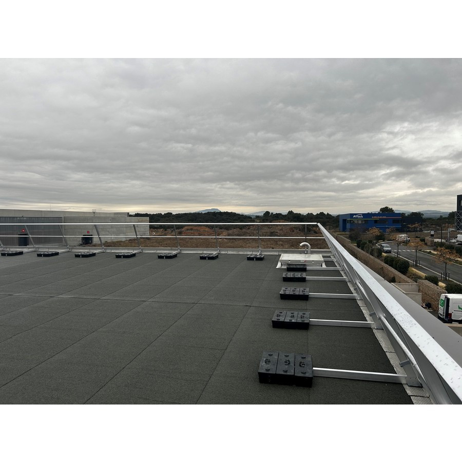 Le garde-corps autoportant FASTGUARD permet la mise en sécurité des terrasses lorsqu'il est techniquement impossible de se fixer sur l'acrotère ou sur la dalle béton. Il évite toute intervention de perçage en toiture, préservant ainsi l'étanchéité.
