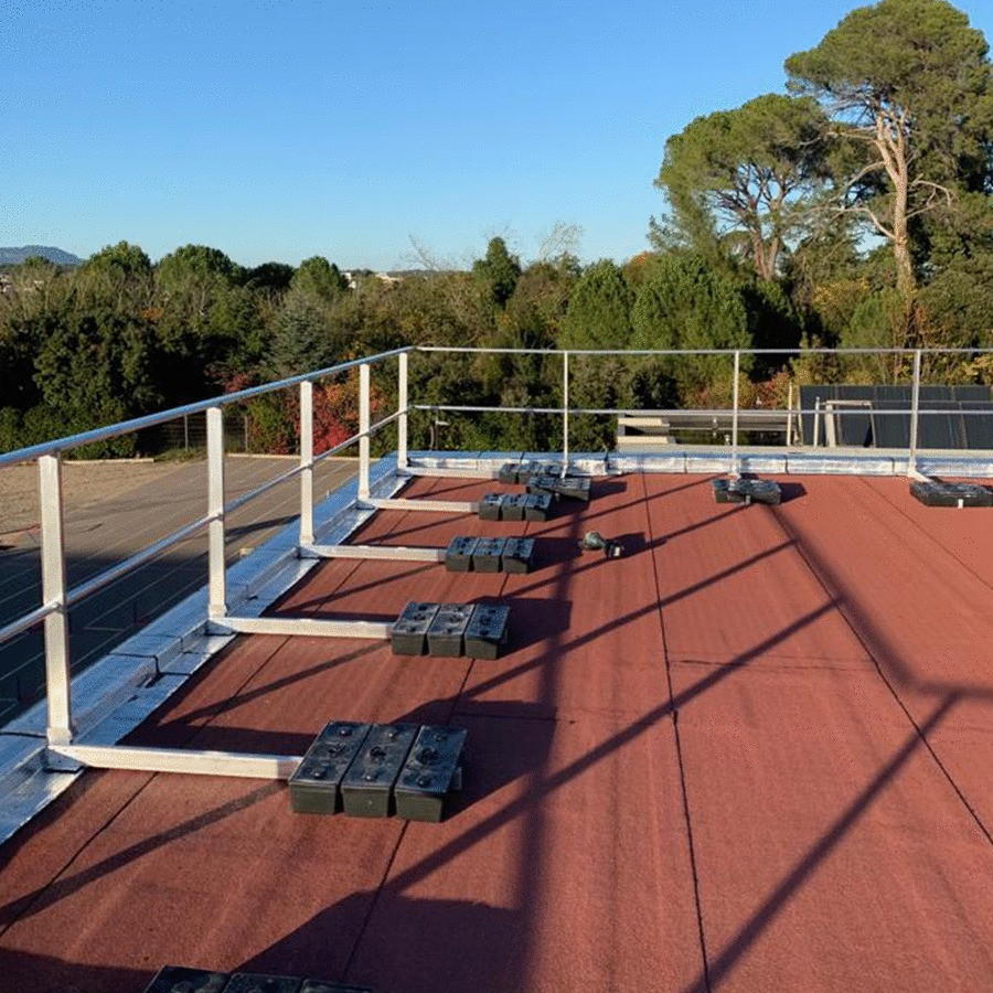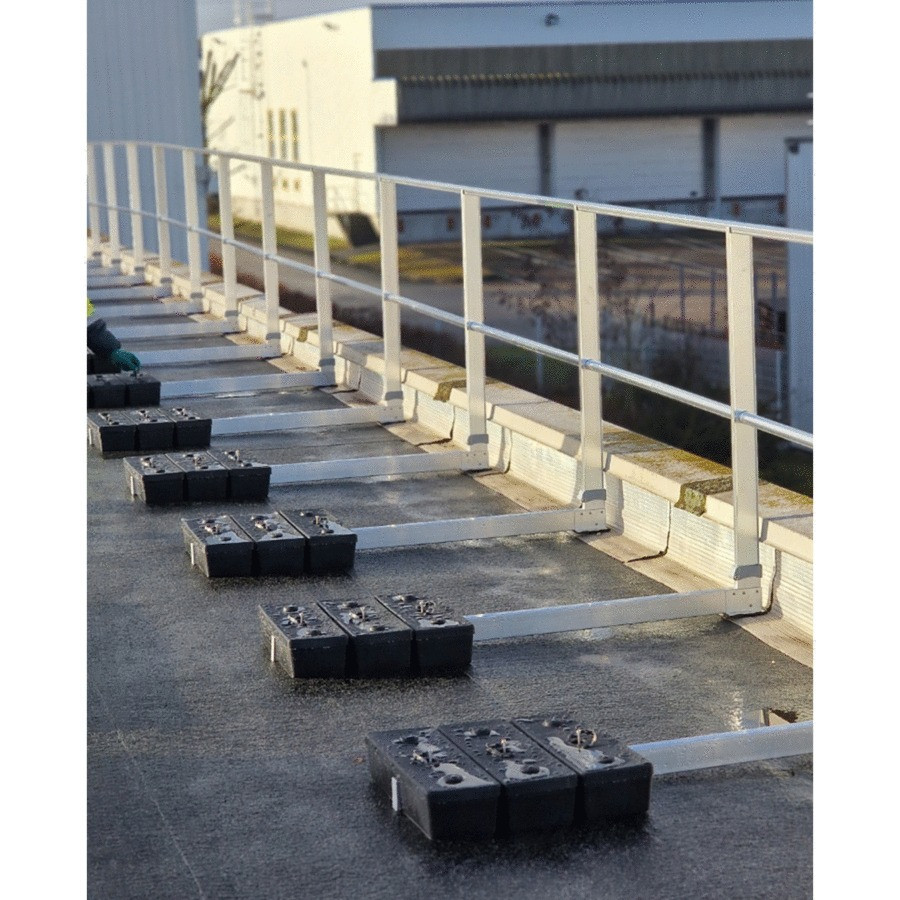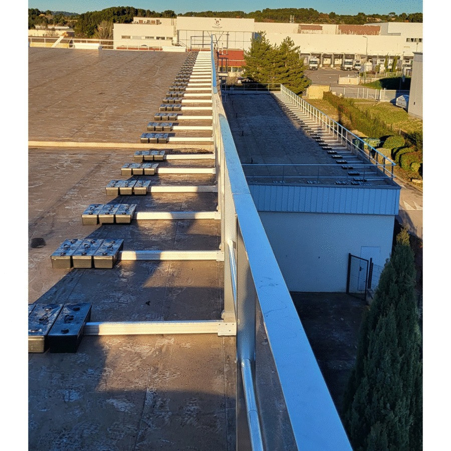 Les garde-corps autoportant Fastguard sont fabriqués en aluminium de haute qualité, garantissant une durabilité à long terme et une excellente résistanceaux intempéries. La main-courante, de forme rectangulaire et continue, est conçue pour respecter l'esthétisme architectural des bâtiments, que ce soit pour des toitures terrasses, industrielles ou traditionnelles.